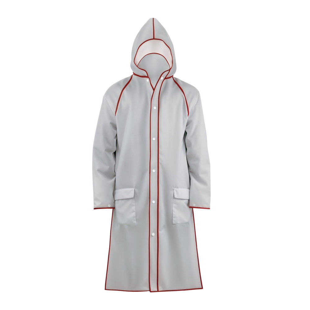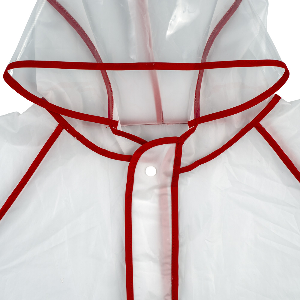 Прочный дождевик-плащ EVA, белый с красным кантом, на кнопках, прозрачный капюшон, с карманами, 130 мк, Nadzor