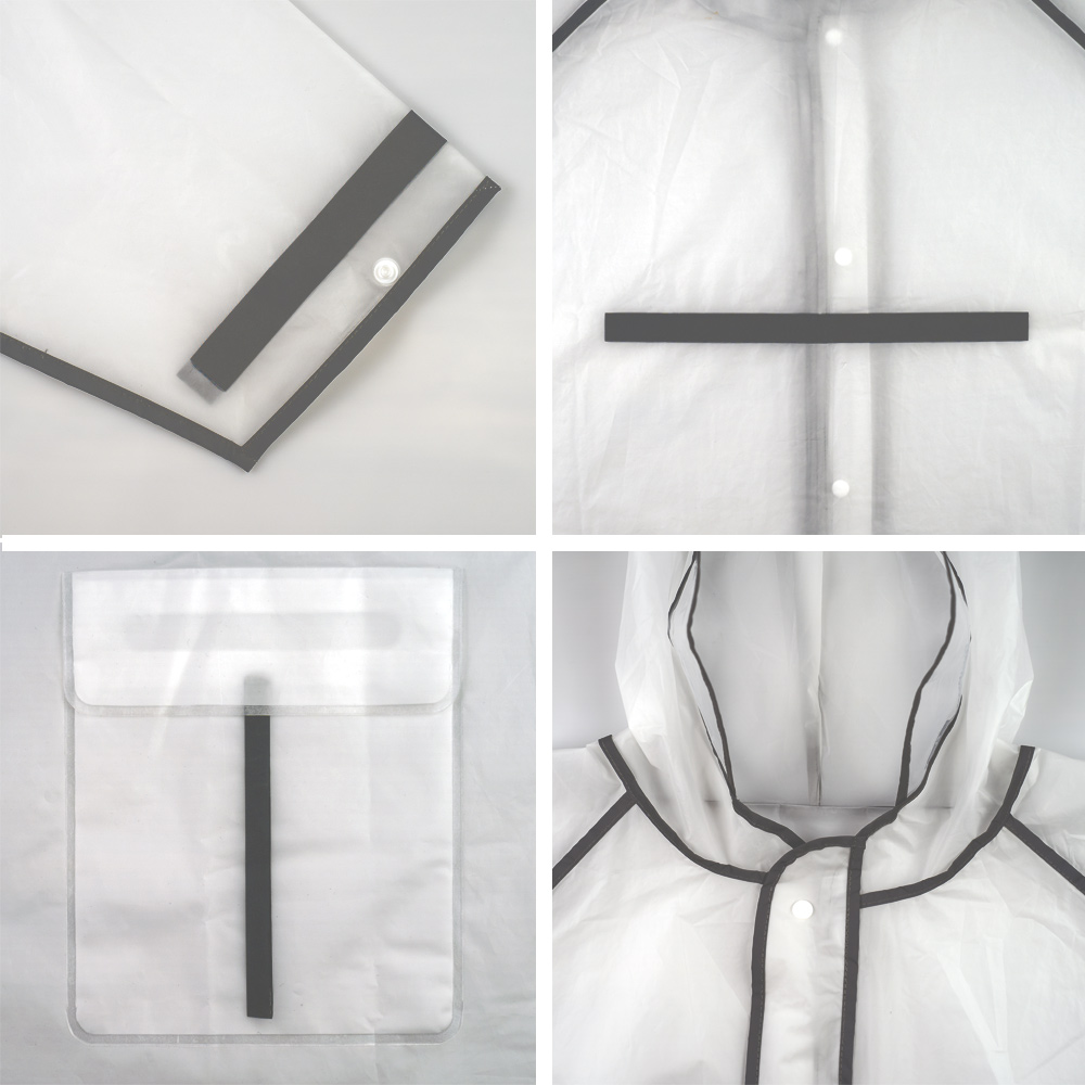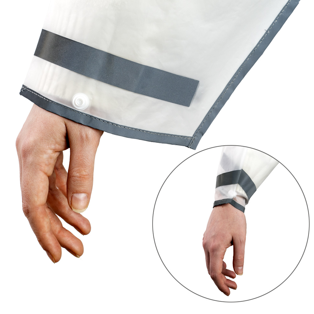 Прочный дождевик-плащ EVA, белый со светоотражающими кантом и полосами, на кнопках, прозрачный капюшон, с карманами, 130 мк, Nadzor