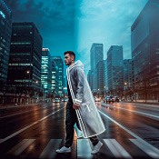 Плотный многоразовый дождевик со светоотражающими полосами.