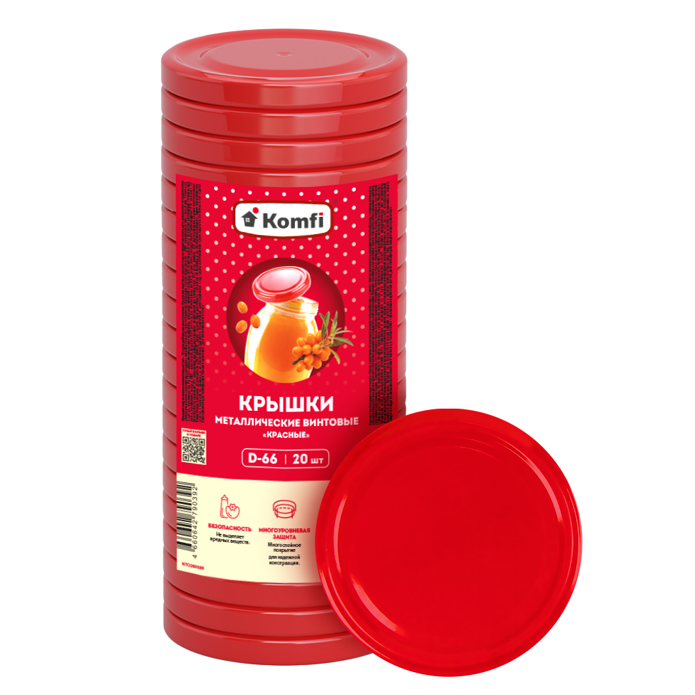 Крышки твист-офф d=66 мм, 20 шт, красные, Komfi