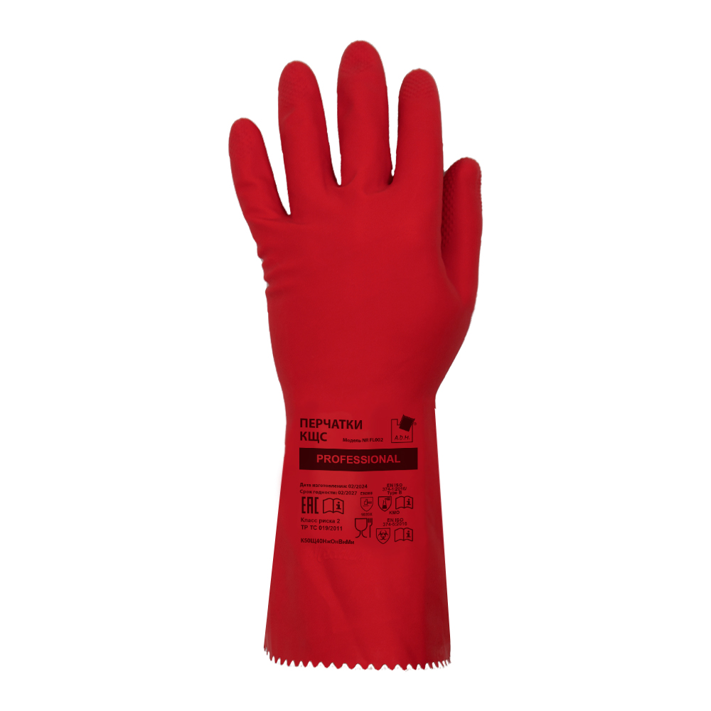 Перчатки защитные КЩС латексные, 1 пара, M, красный, ADM Professional