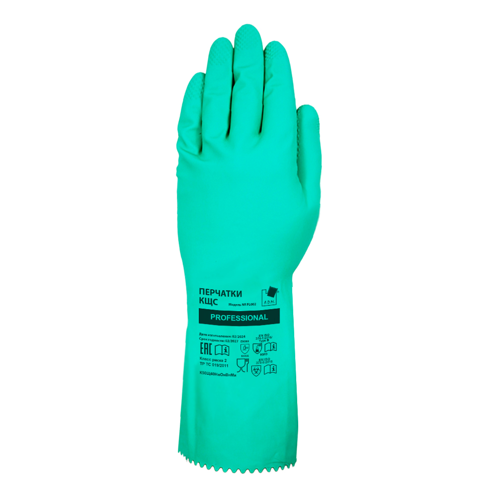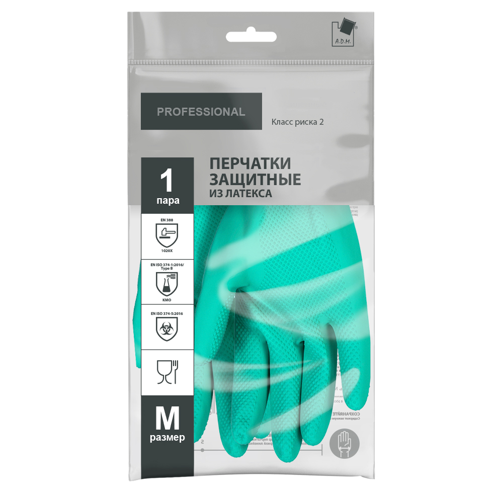 Перчатки защитные КЩС латексные, 1 пара, M, зеленый, ADM Professional