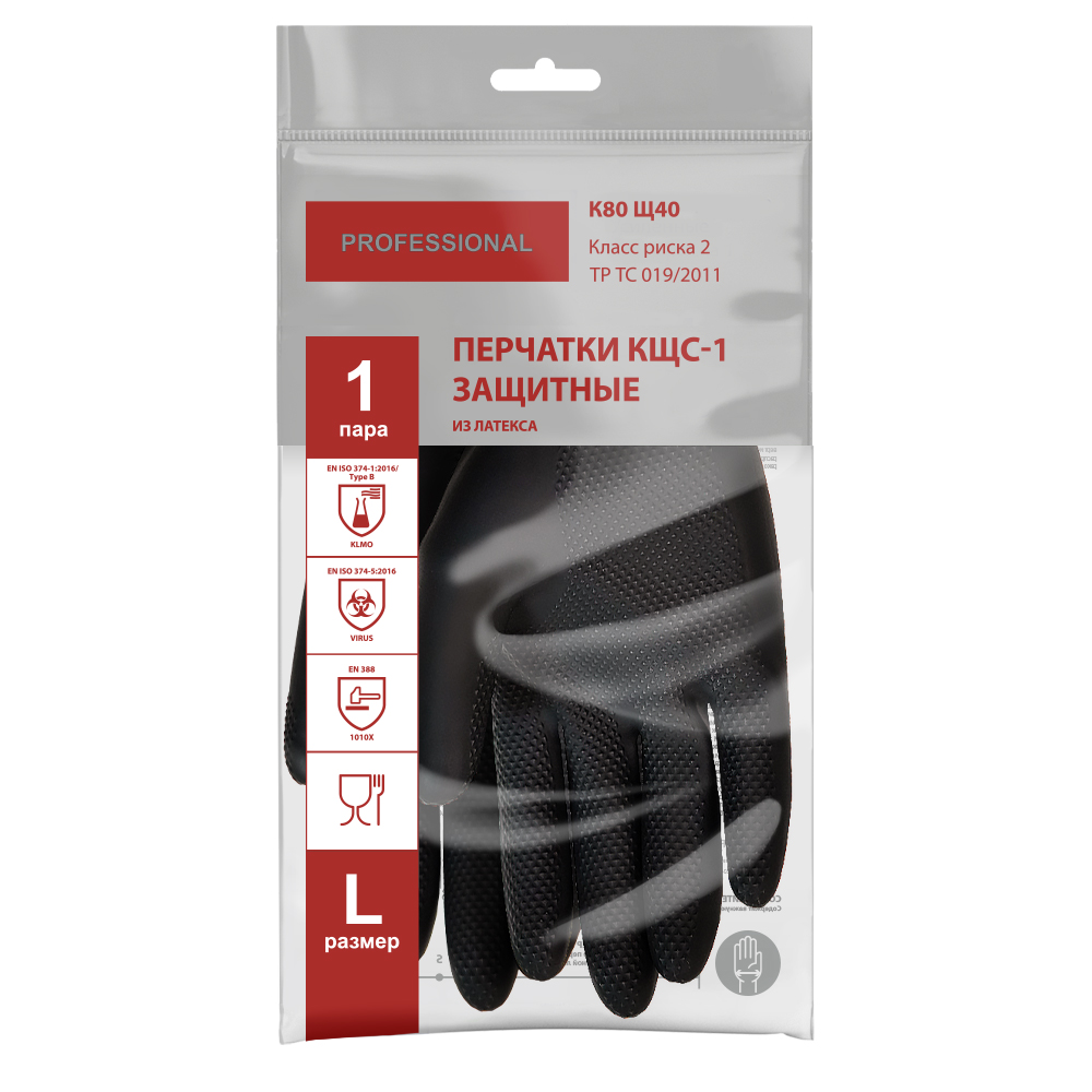 Перчатки защитные КЩС-1 латексные, 1 пара, L, черный, ADM Professional