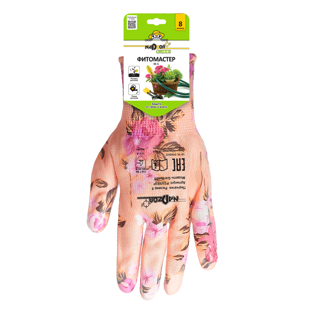 Перчатки садовые «ФИТОМАСТЕР М-5», полиэстер, нитриловое покрытие, разноцветные, микс 5 цветов, в и/у, 8(М), Nadzor