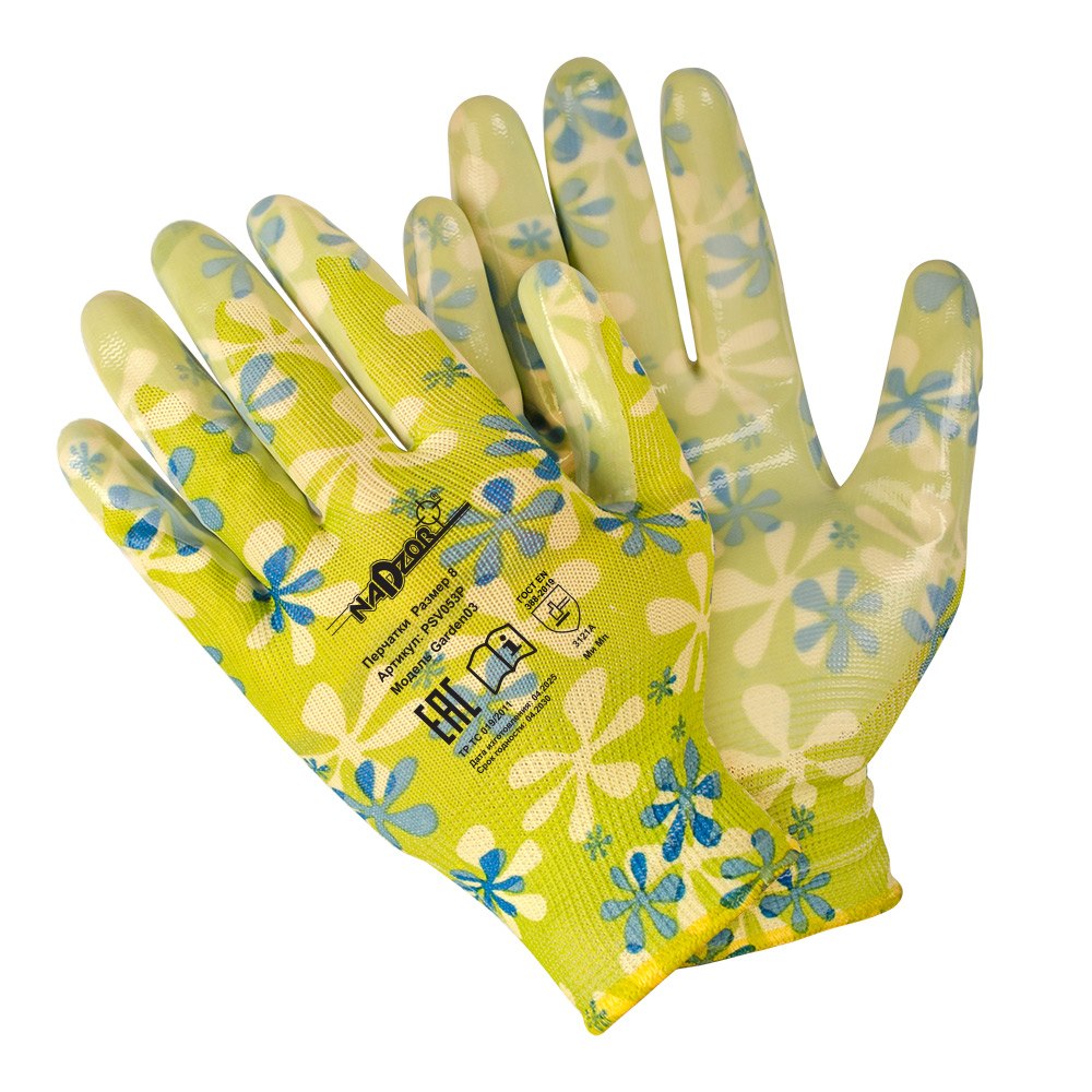 Садовые перчатки Nadzor отлично подходят для работ, предполагающих контакт с загрязненными и влажными поверхностями и предметами: работа с удобрениями и рассадой, полив растений. Нитриловое покрытие обеспечивает отличное сцепление, а также высокий уровень чувствительности.