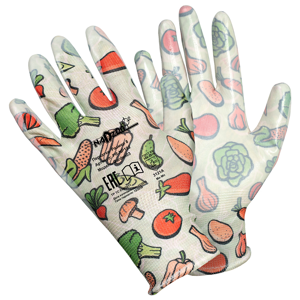 Садовые перчатки Nadzor отлично подходят для работ, предполагающих контакт с загрязненными и влажными поверхностями и предметами: работа с удобрениями и рассадой, полив растений. Нитриловое покрытие обеспечивает отличное сцепление, а также высокий уровень чувствительности. 5 ярких дизайнов - под любой вкус покупателя!