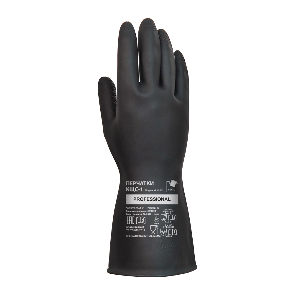 Перчатки защитные КЩС-1 латексные, 1 пара, XL, черный, ADM Professional