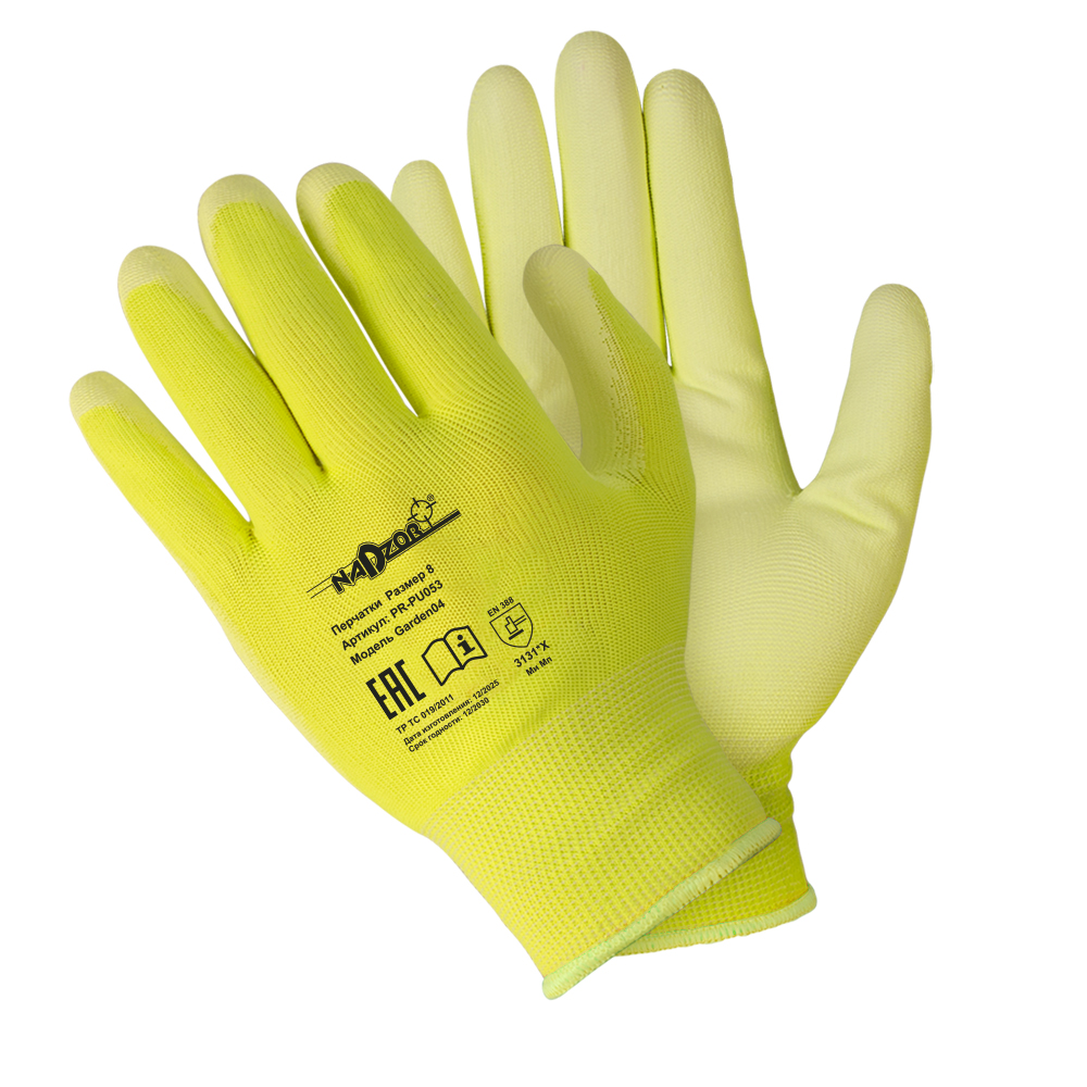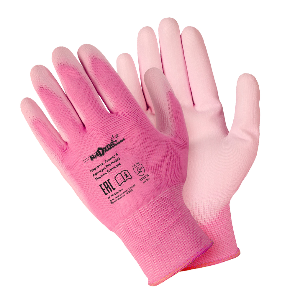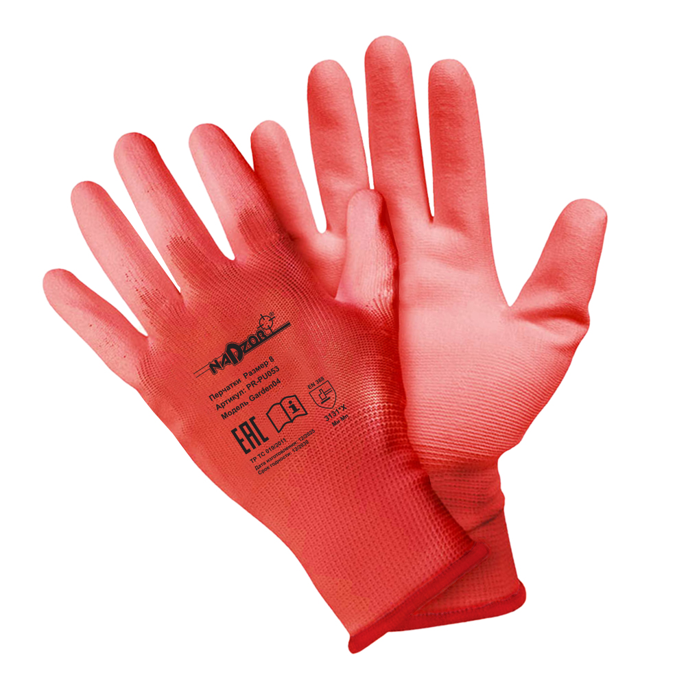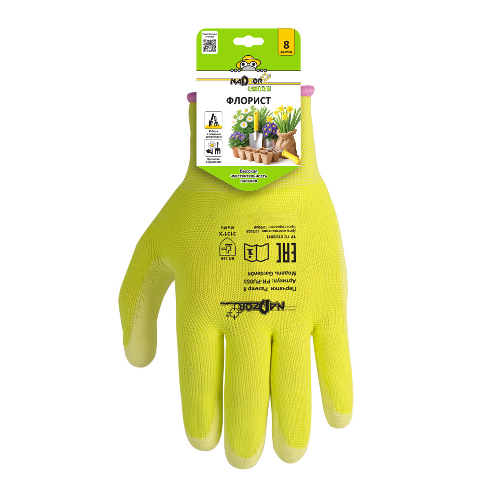 Перчатки садовые «ФЛОРИСТ», полиэстер, полиуретановое покрытие, однотонные, микс 5 цветов, в и/у, 8(M), Nadzor