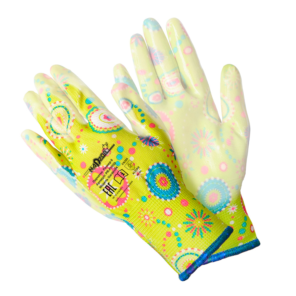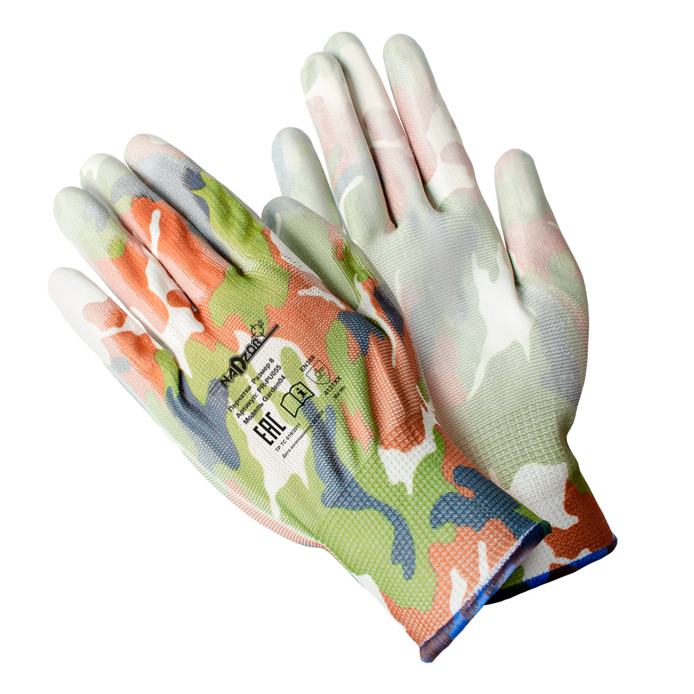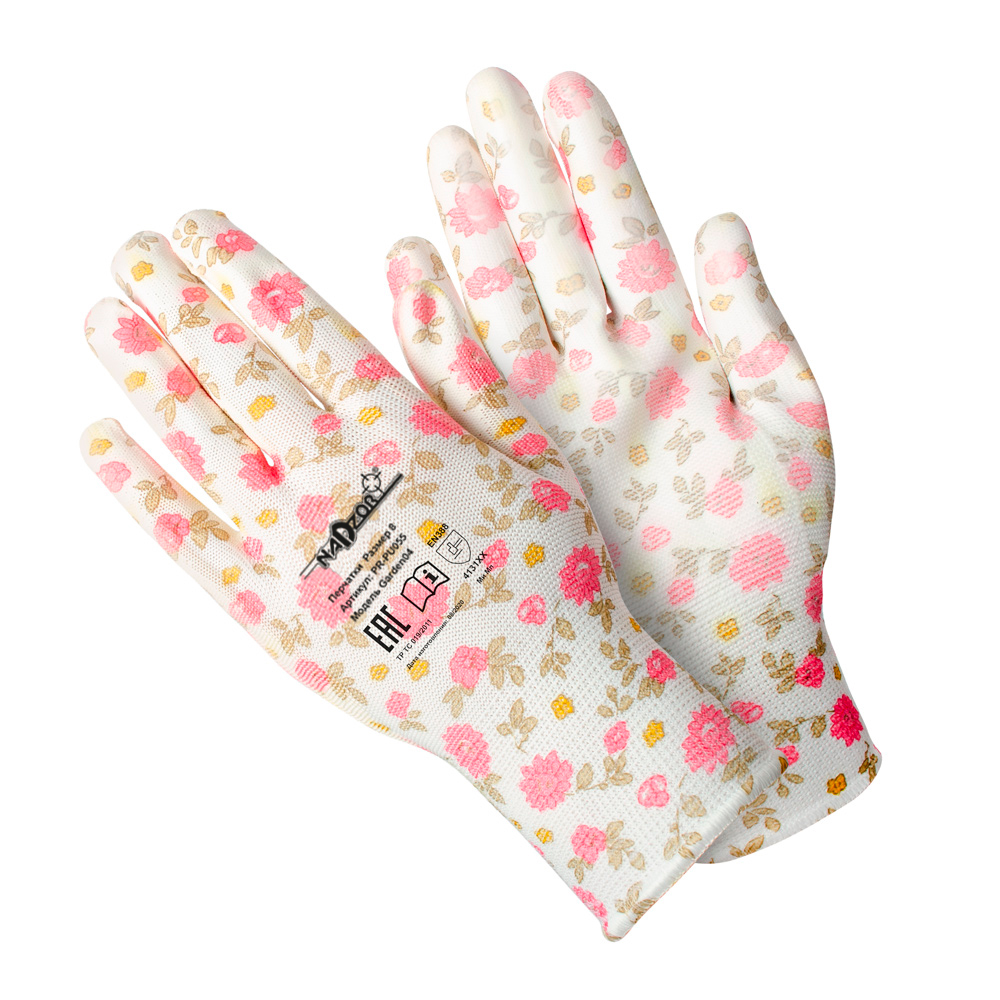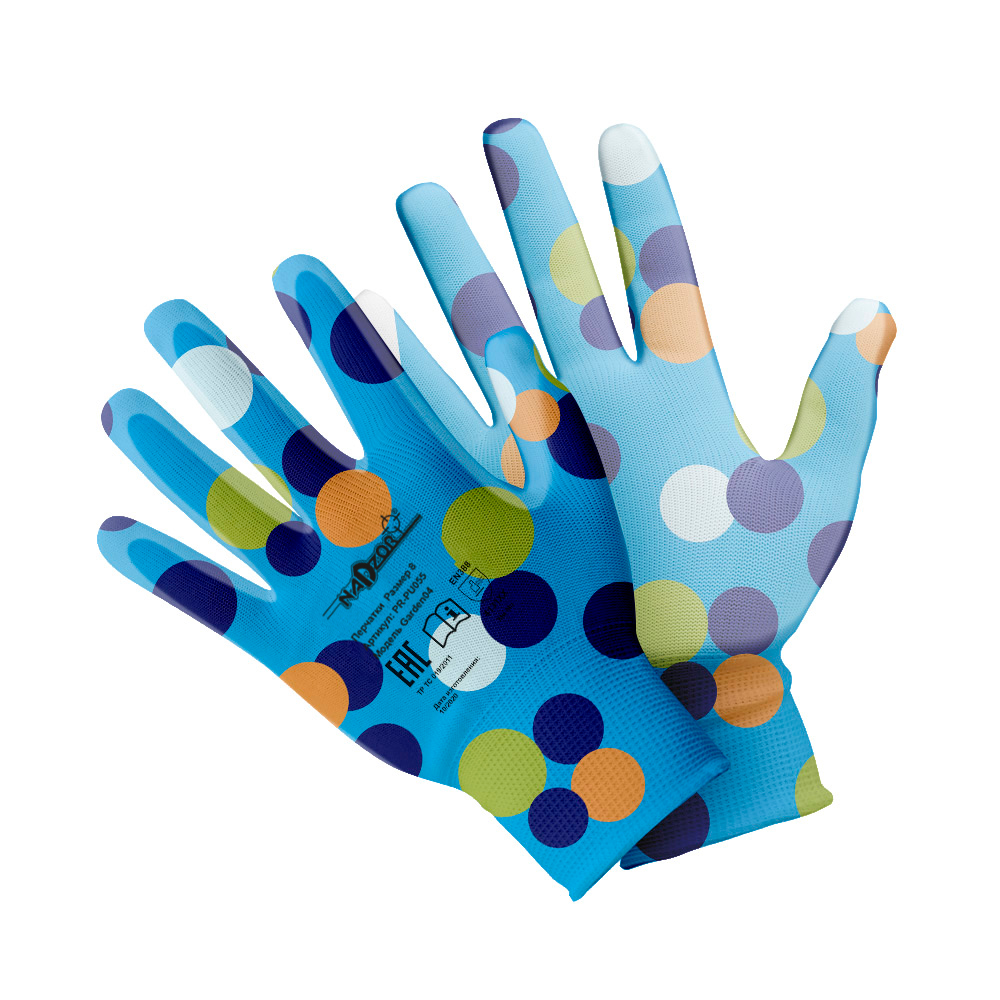 Перчатки садовые «ФЛОРИСТ», полиэстер, полиуретановое покрытие, разноцветные, микс 5 цветов №2, в и/у, 8(М), Nadzor