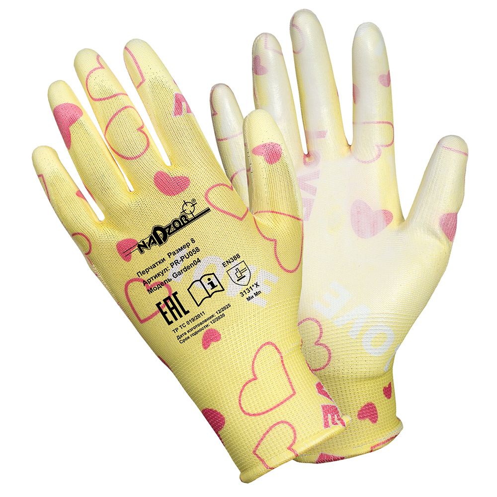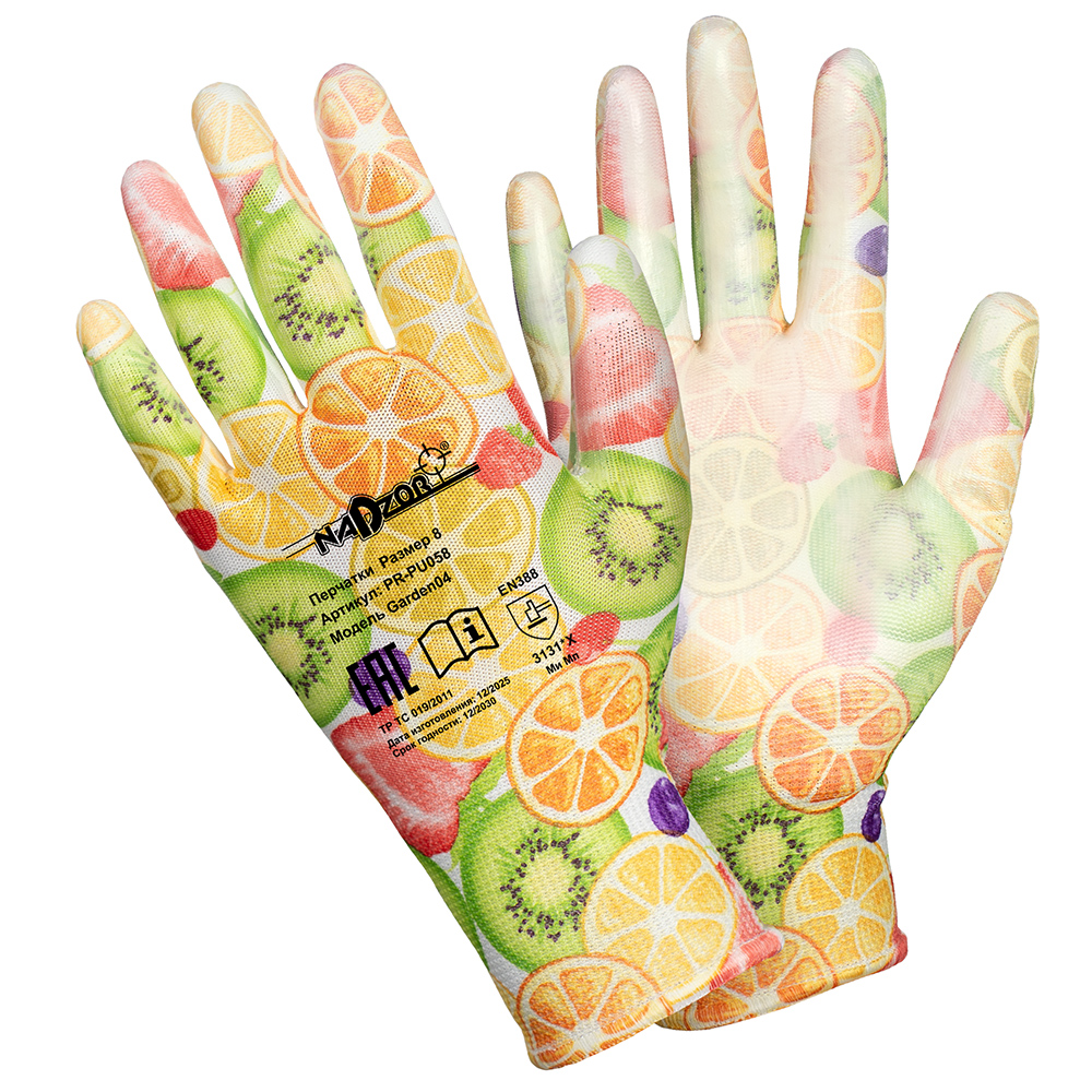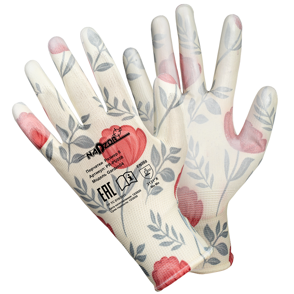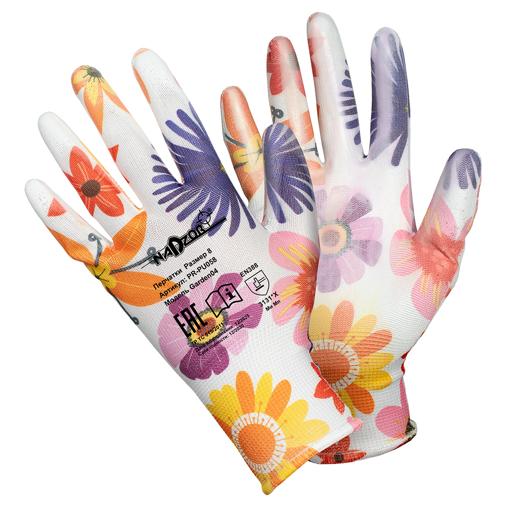 Перчатки садовые «ФЛОРИСТ», полиэстер, полиуретановое покрытие, разноцветные, микс 5 цветов NEW, в и/у, 8(М), Nadzor