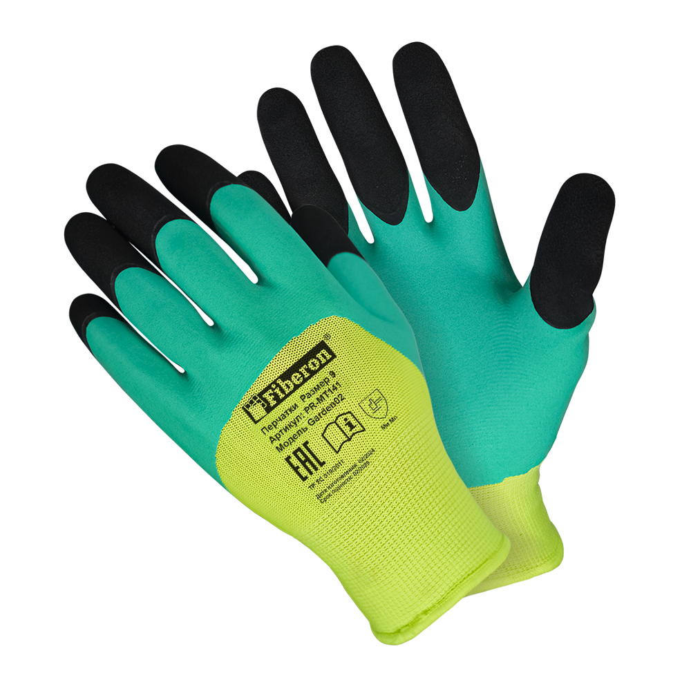 Перчатки «Садовые работы», полиэстер, вспененное латексное покрытие с усилением на пальцах, в и/у, 9(L), Fiberon