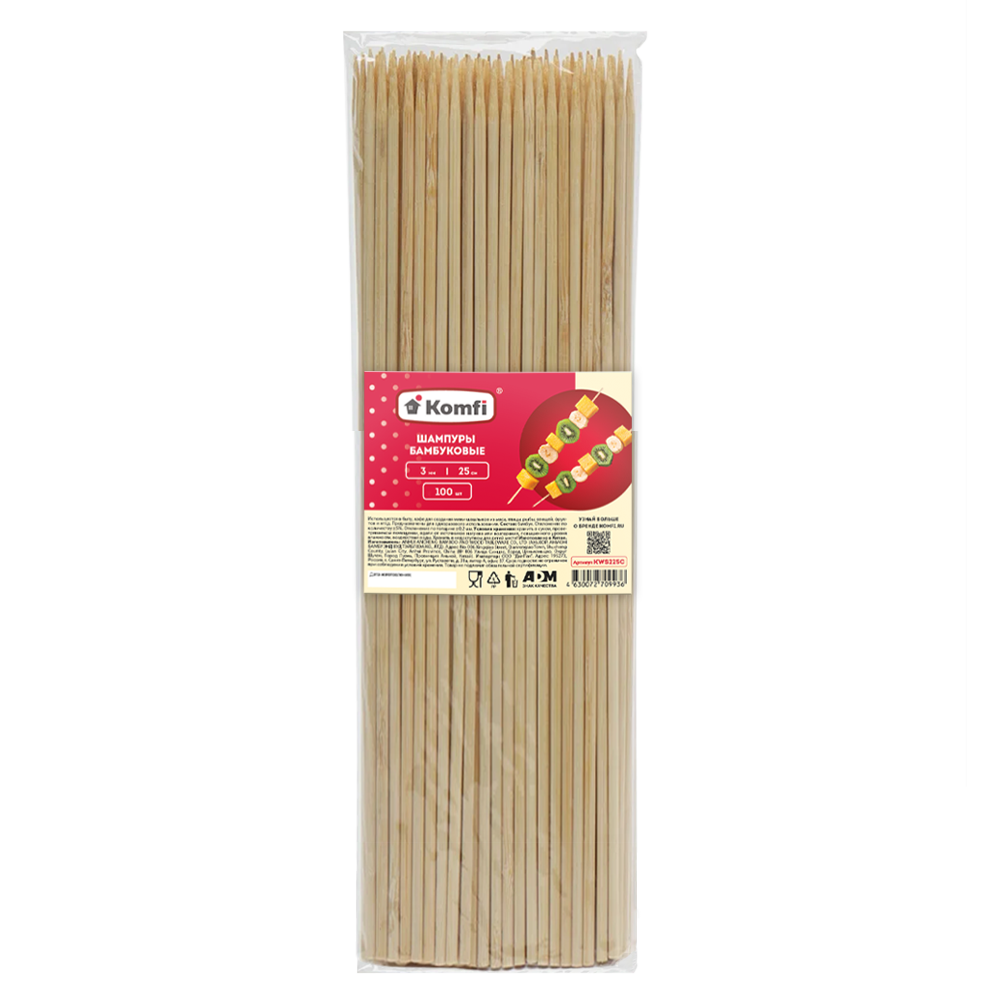 Шампура бамбуковые, 25 см, 100 шт/уп., Komfi
