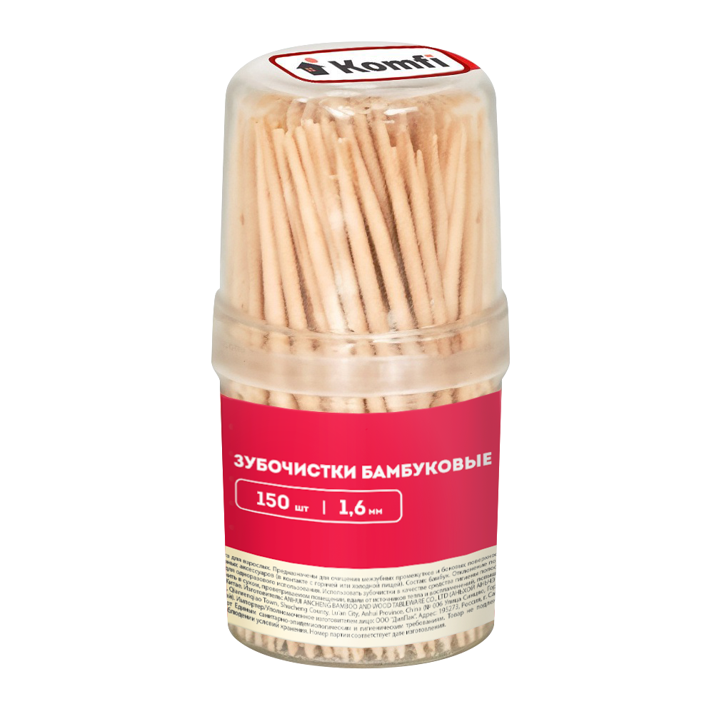 Зубочистки бамбуковые, 150 шт, в баночке, Komfi