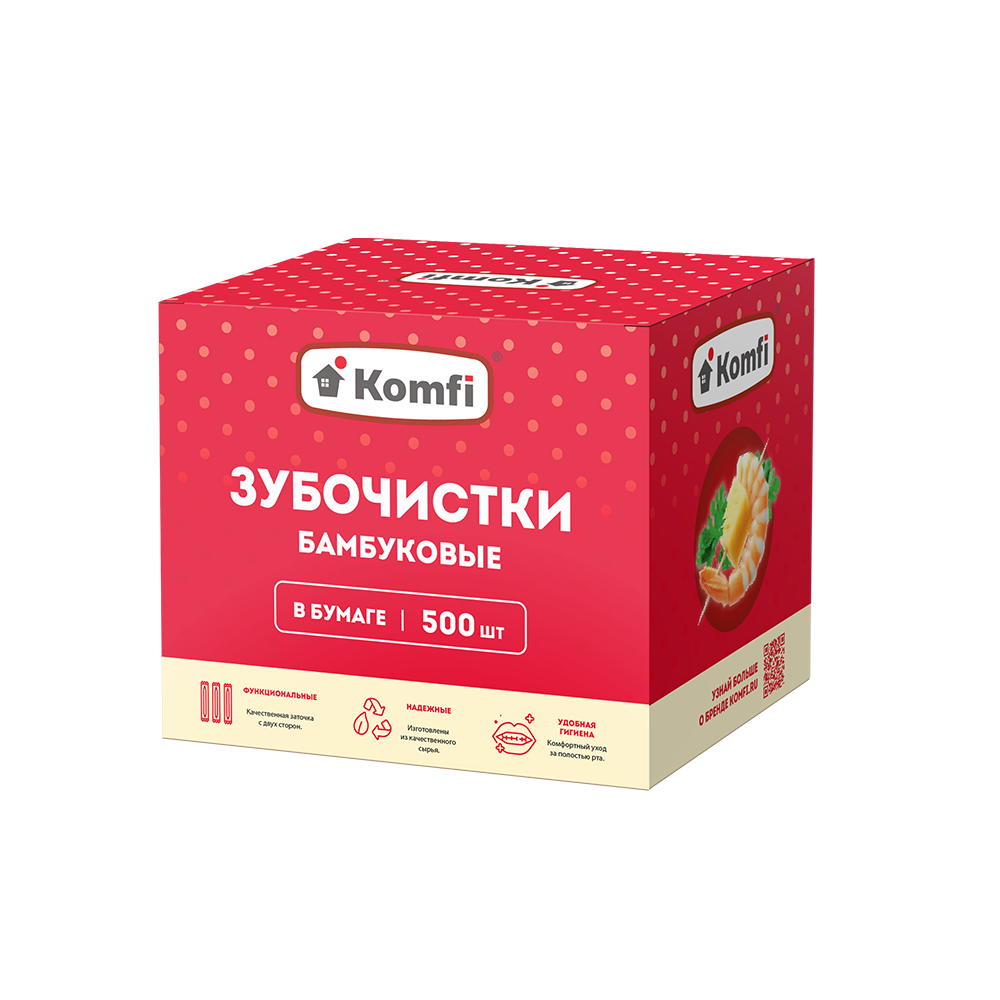 Зубочистки бамбуковые в инд. бумажной упаковке, 500 шт, в коробке, Komfi