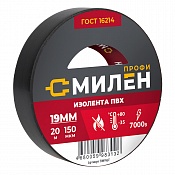 Изолента, ПВХ, 19мм * 20м, 150 мкм, 7кВ, чёрная, Милен