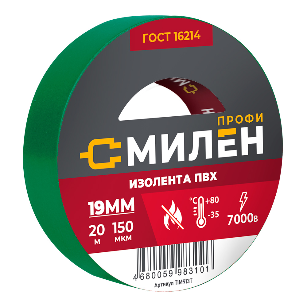 Изолента МИЛЕН - лента профессионального качества, используется для изоляции при электротехнических работах, жгутирования проводов и кабельных соединений. Изолента обладает высокой прочностью, эластичностью, морозостойкостью, выдерживает напряжение пробоя до 5Кв, не подлежит горению. Соответствует требованиям ГОСТ 16214-86.
