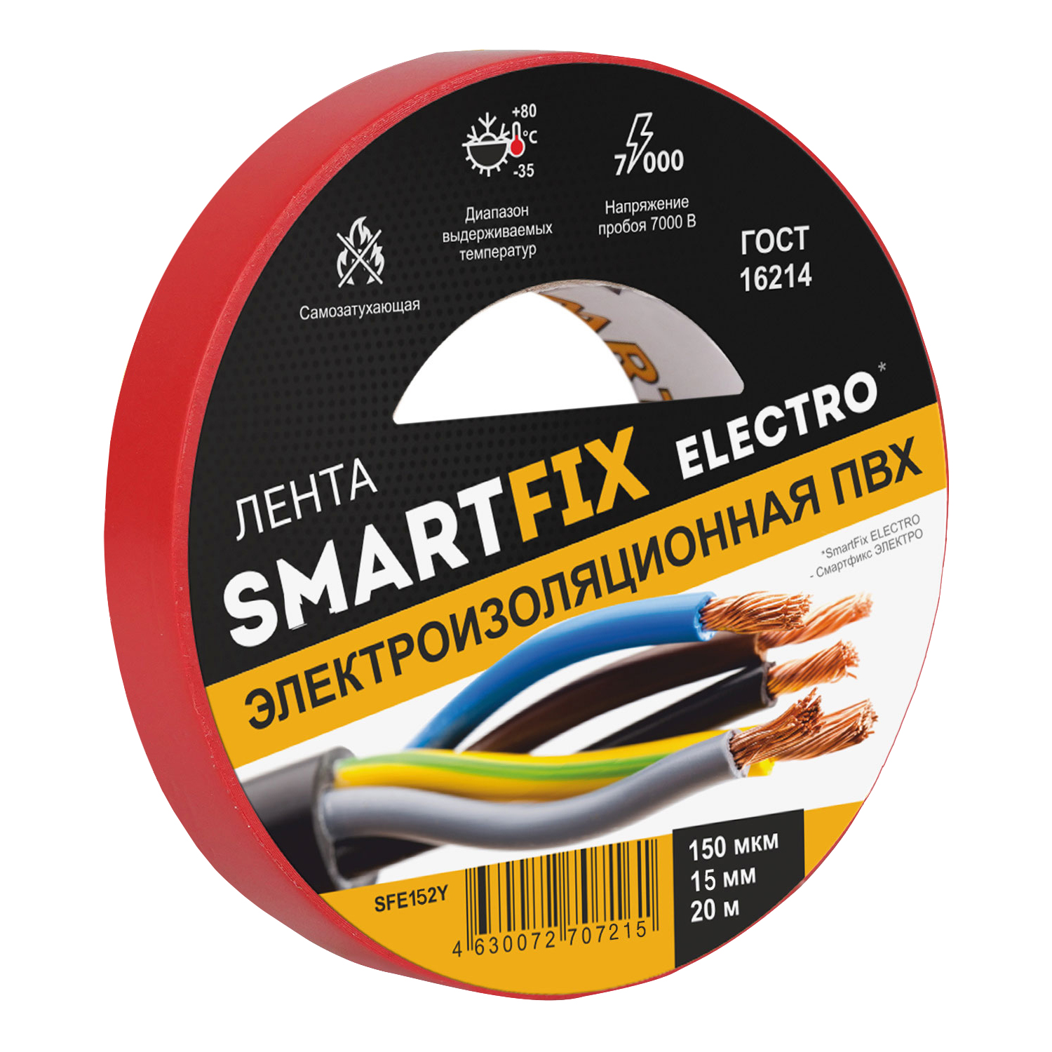 Изолента SmartFix ELECTRO, 15мм*20м 150 мкм, 7Кв, красная