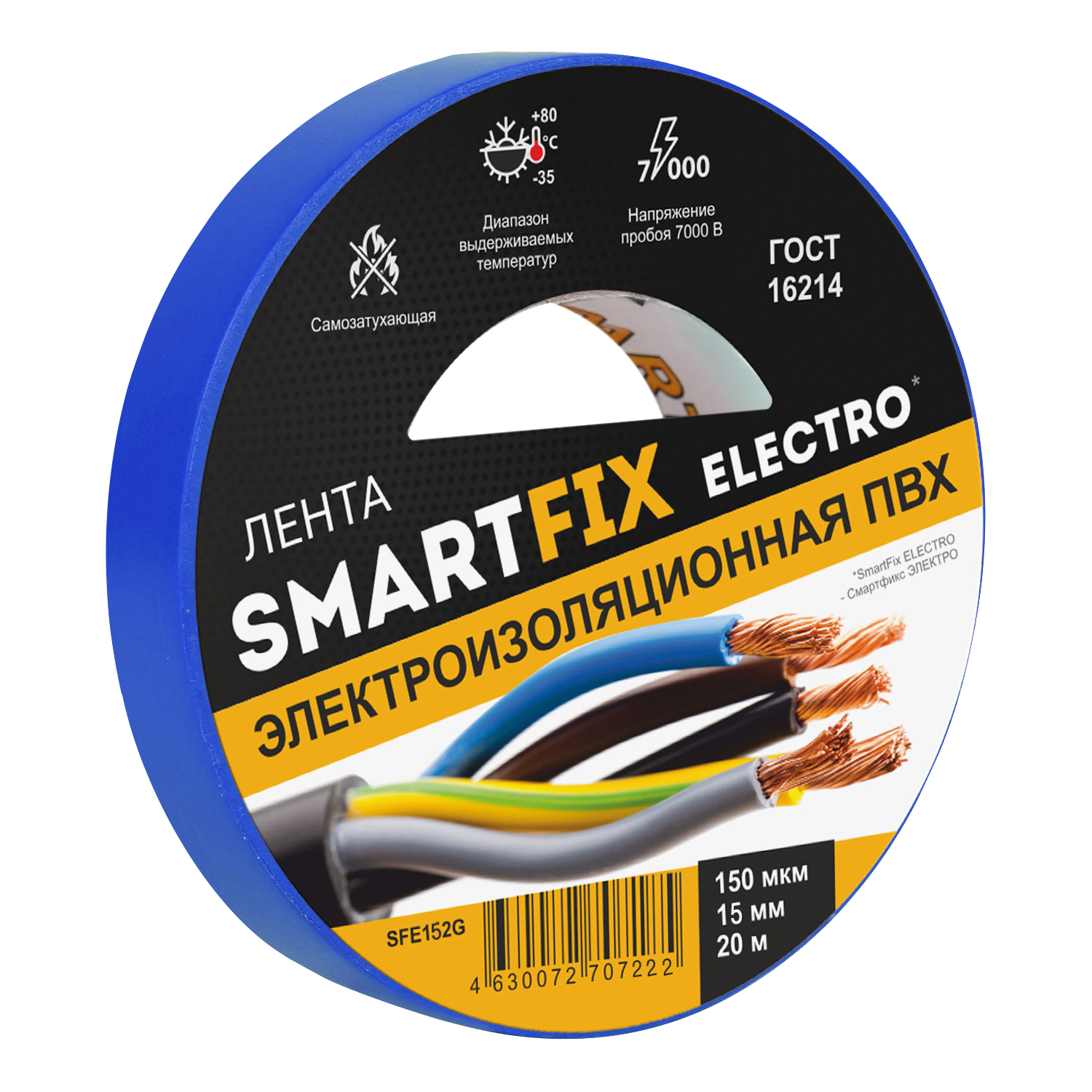 Изолента SmartFix ELECTRO, 15мм*20м 150 мкм, 7Кв, синяя