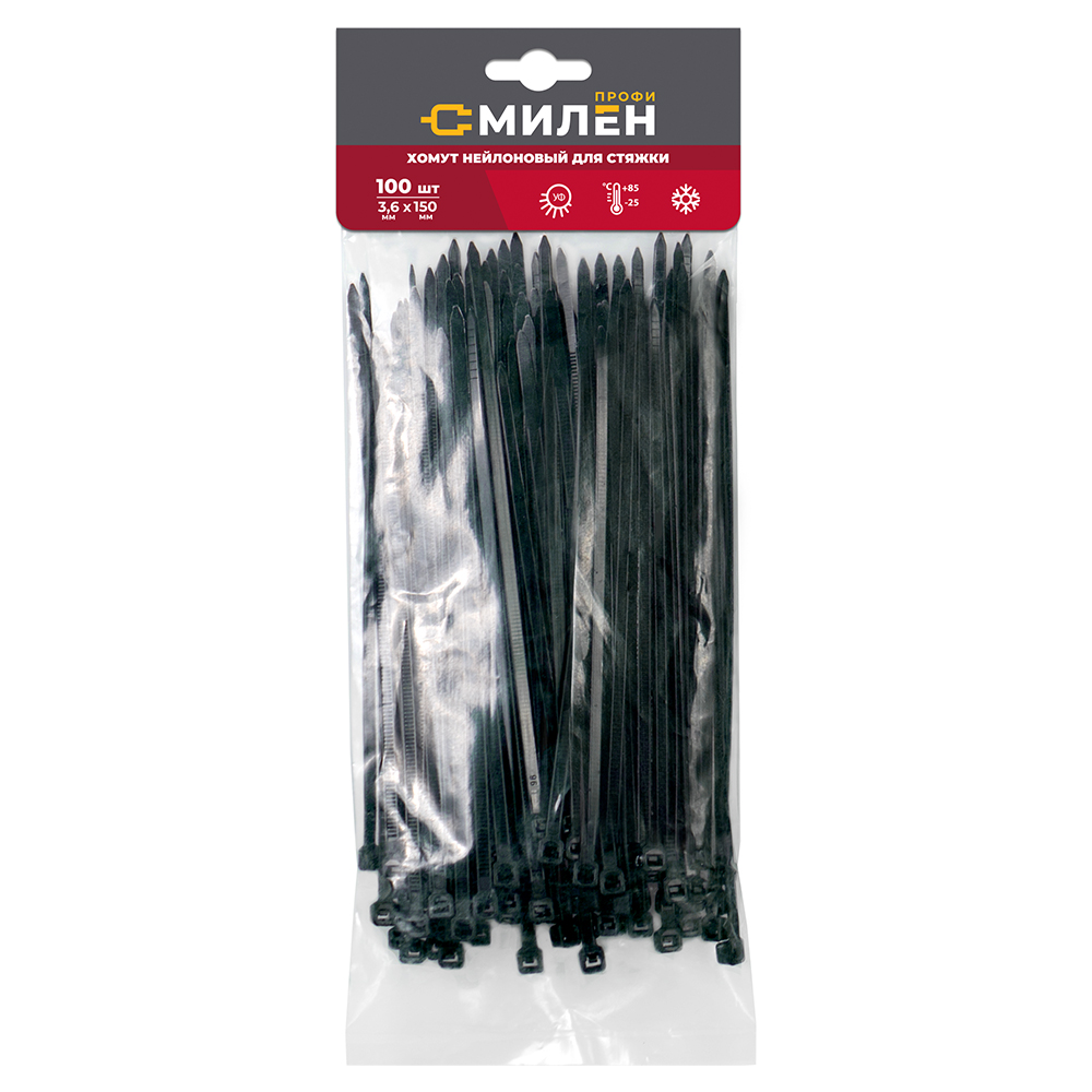 Нейлоновые хомуты для стяжки Милен, чёрные, 3,6*150 мм, 100 шт