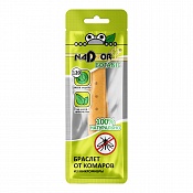 Браслет из микрофибры с пластиковой застежкой для защиты взрослых и детей (с 3 лет) от нападения комаров. Материал, из которого состоит браслет, пропитан натуральным маслом цитронеллы. Аромат цитронеллы обладает мощным отпугивающим эффектом, забивает рецепторы насекомых. Защищает не менее 120 часов. В промежутках между использованием, браслет необходимо хранить в заводской герметичной упаковке. Браслеты поставляются в цветном шоу-боксе.