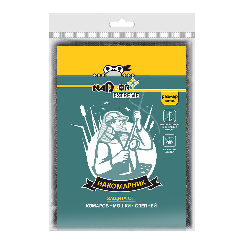 Накомарник предназначен для надежной защиты от комаров, мошки, слепней и других насекомых. Область защиты охватывает голову и шею. Накомарник не мешает обзору, не препятствует циркуляции воздуха, не впитывает влагу и быстро сохнет. Накомарник в сложенном виде занимает минимум места. Удобнее всего носить поверх головного убора