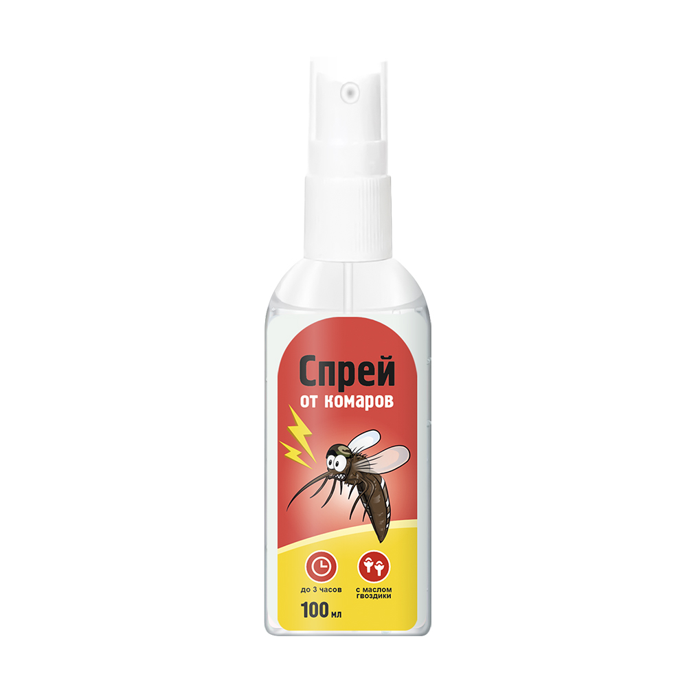 Спрей от комаров обладает отпугивающим эффектом длительного действия и обеспечивает надежную защиту от укусов кровососущих насекомых на открытом воздухе для всей семьи. Наносится на кожу. Действует до 3-х часов. С маслом гвоздики.