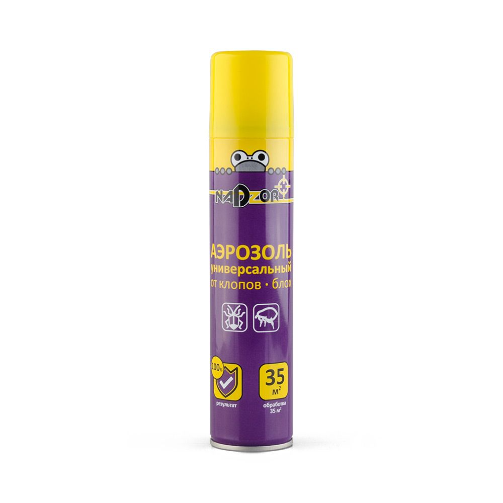 Аэрозоль от клопов Nadzor – в своем составе содержит три сильнейших инсектицида: тетраметрин 0,2%, циперметрин 0,2%, синергист 1,2%, что позволяет избавится от надоедливых паразитов на 100%.
