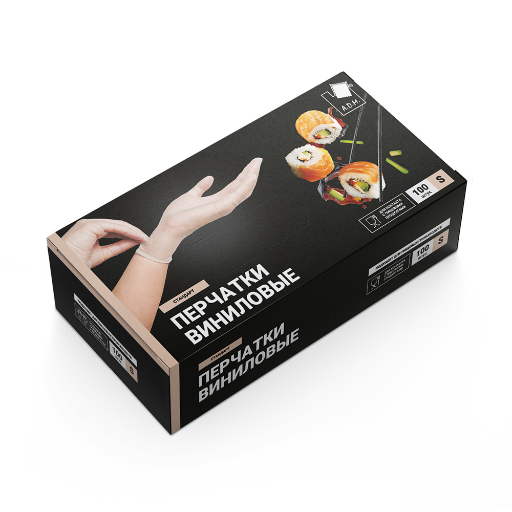 Перчатки виниловые (7 гр), белые, S, 100 шт/уп., А.Д.М