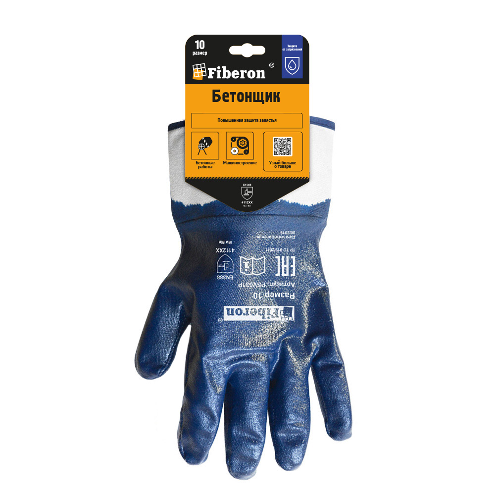 Перчатки "БЕТОНЩИК, манжета-крага", хлопок+полиэстер, нитриловое покрытие, в и/у, 10(XL), Fiberon