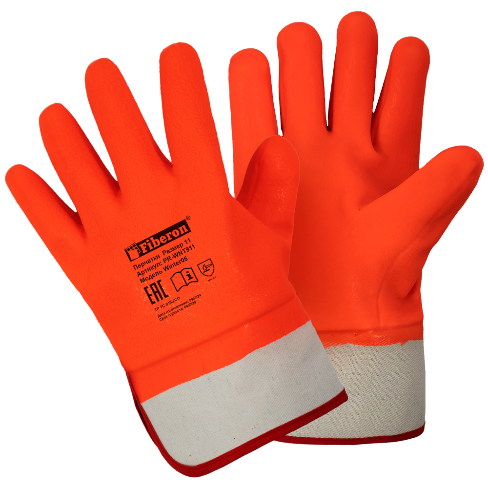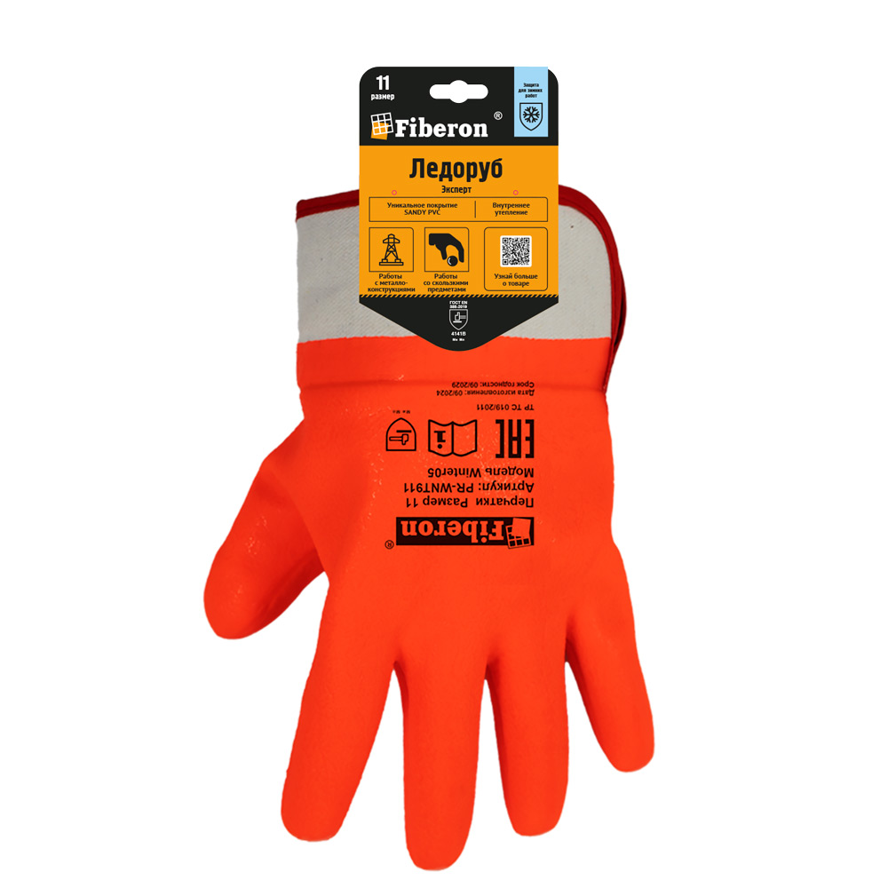 Перчатки "ЛЕДОРУБ ЭКСПЕРТ: стойкость к загрязнениям, манжета-крага" хлопок+флис, ПВХ покрытие, в и/у, 11(XXL), Fiberon