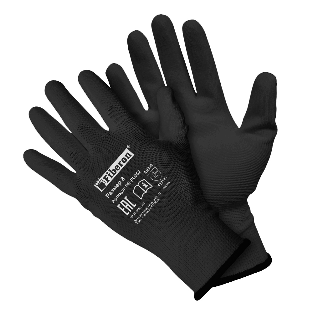 Перчатки "МАЛЯР: точные работы", полиэстер, полиуретановое покрытие, в и/у, 8(M), черные, Fiberon