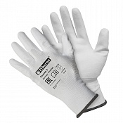 Перчатки "МАЛЯР: точные работы", полиэстер, полиуретановое покрытие, в и/у, 9(L), белые, Fiberon
