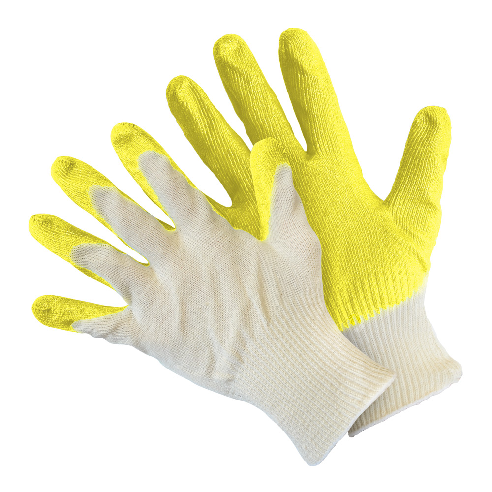 Перчатки вязаные ХБ, с одинарным латексным покрытием, белый + желтый