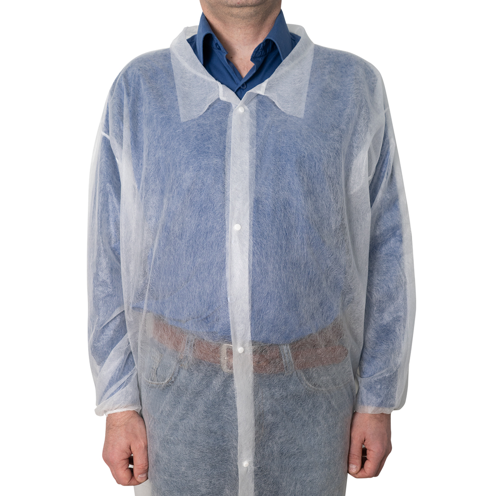 Рукав на резинке и удобные застёжки-кнопки предотвращают попадание пыли, грязи и влаги под халат. Невесомый, не стесняет движения при использовании. Универсальный размер подходит как для мужчин, так и для женщин. Обратите внимание! Халаты упакованы по 10 штук.