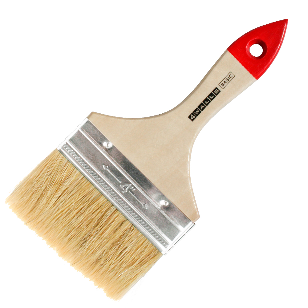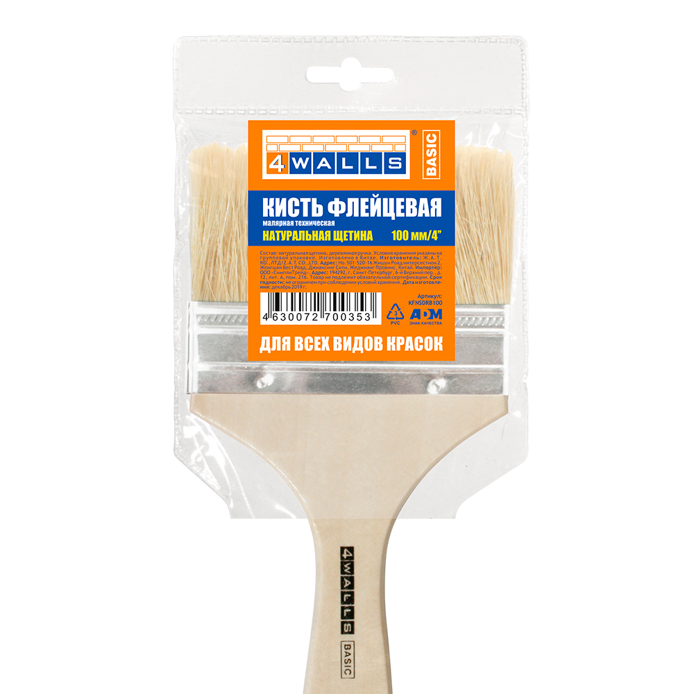 Кисть флейцевая, 100 мм, натуральная щетина, деревянная ручка, 4Walls Basic