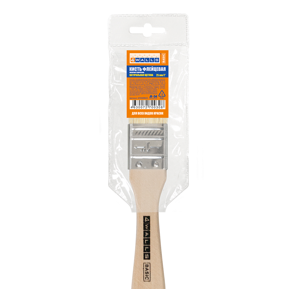 Кисть флейцевая, 25 мм, натуральная щетина, деревянная ручка, 4Walls Basic