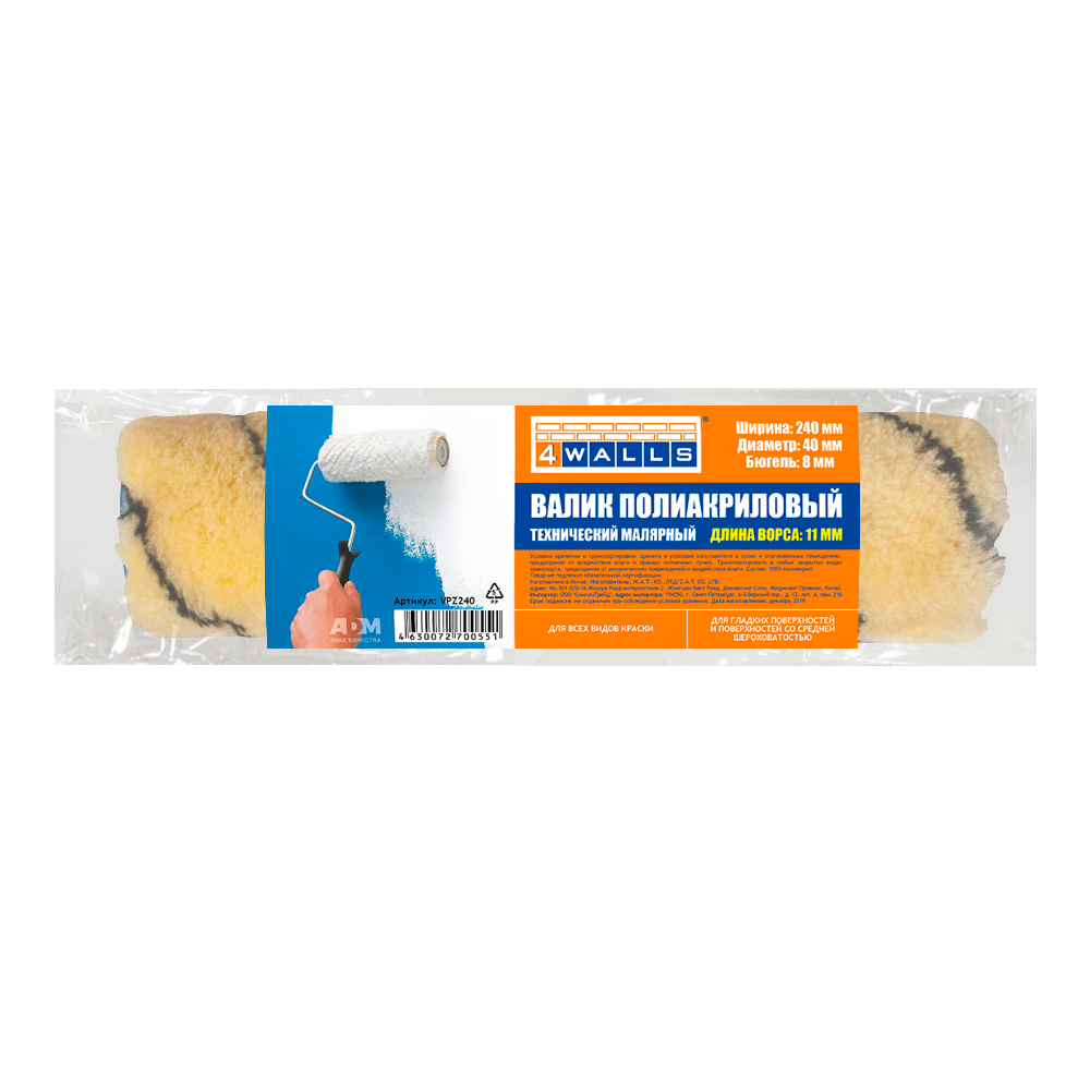 Ролик малярный полиакриловый 11 мм, зебра, ш. 240 мм, 4Walls Master