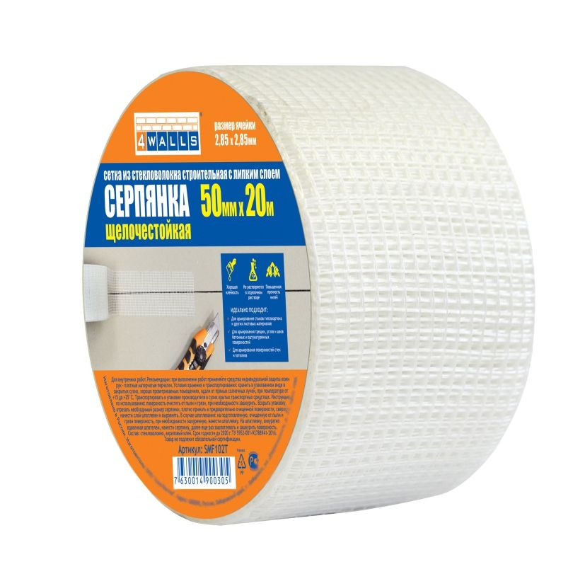 Серпянка, стекловолокно, 50 мм * 20 м, 4Walls