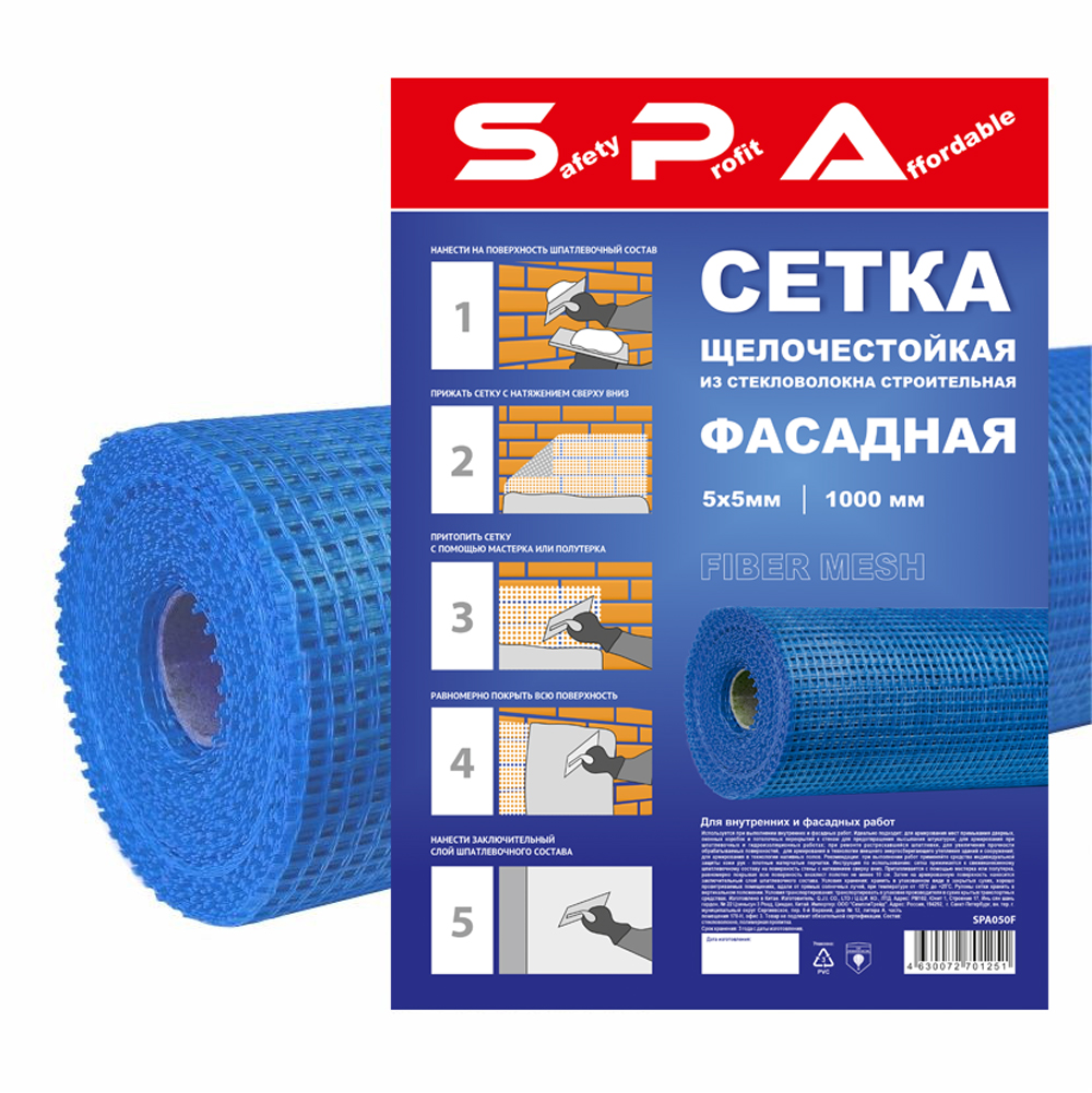 Сетка фасадная, стекловолокно, 1*50 м, ячейка 5x5, синяя, SPA050F, SPA
