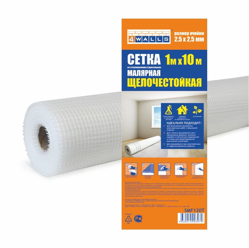 Сетка малярная применяется для внутренних работ при финишной отделке, для работ с минимальным количеством шпатлевки: для шпатлевочных работ; для тонкого армирования мест примыкания различных перекрытий к стенам; для армирования при гидроизоляционных работах. Сетка щелочестойкая, не растворяется в отделочном растворе, долговечная, защищает поверхность от образования трещин.