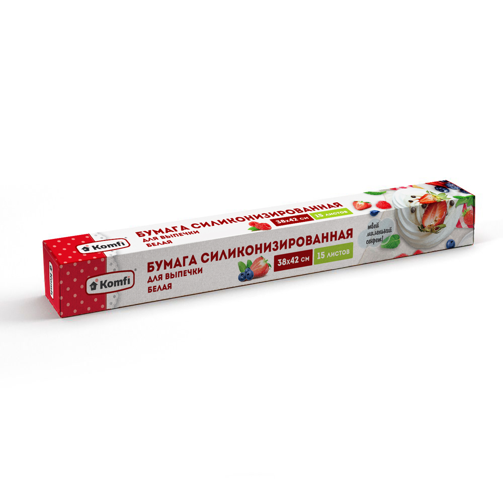 Бумага для выпекания силиконизированная 15 листов, 38 х 42 см , белая 40г/м2, в карт. коробке, Komfi