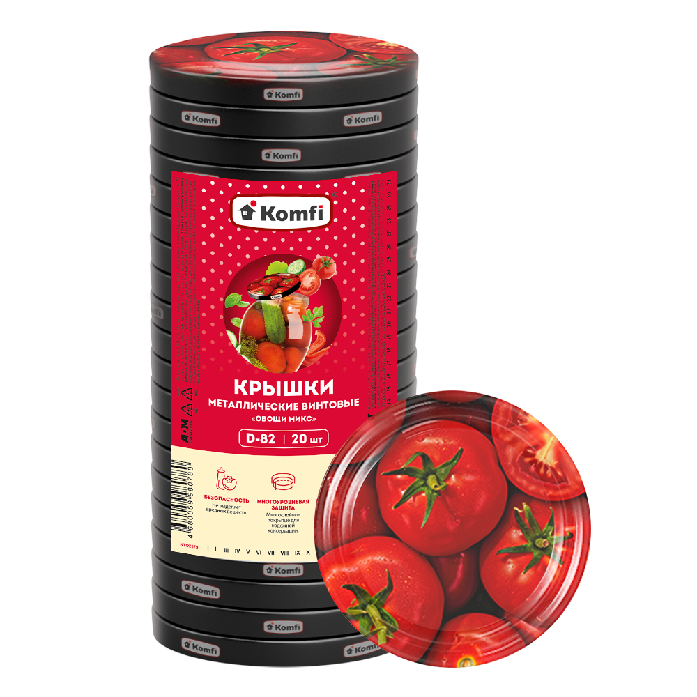 Крышки твист-офф d=82 мм, 20 шт/уп., mix дизайнов «Овощи», Komfi