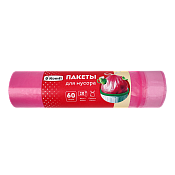 Мешки для мусора ПНД с завязками 60л, 20шт, в рулоне, розовые, Komfi