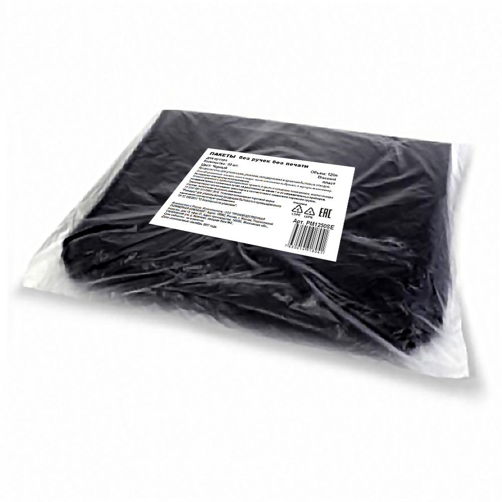 Мешки для мусора ПВД, 35 мкм, 120л, чёрные, в пачке, 50 шт/уп.
