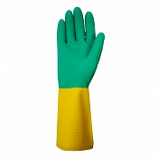 Двуслойные герметичные перчатки из латекса с добавлением неопрена имеют повышенную химическую стойкость от широкого спектра кислот, а также от щелочей, агрессивных моющих средств, растительных и животных жиров. Двойной облив в области ладони увеличивает износостойкость, а добавление неопрена увеличивает механическую прочность. Внутри перчатки добавлено хлопковое напыление для комфортной эксплуатации и предотвращения раздражения рук.