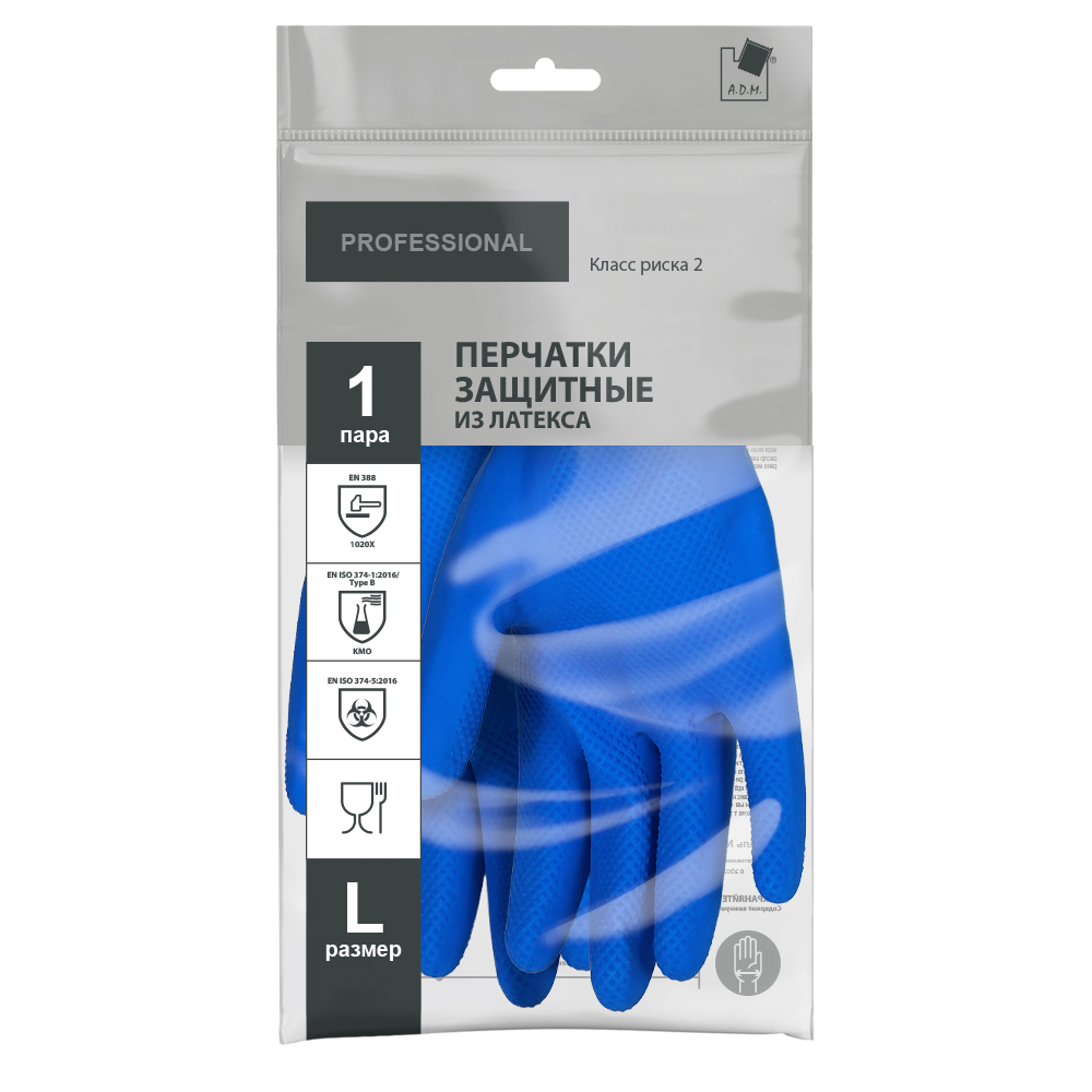 Перчатки защитные КЩС латексные, 1 пара, L, синий, ADM Professional