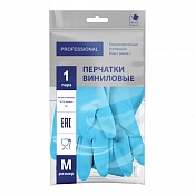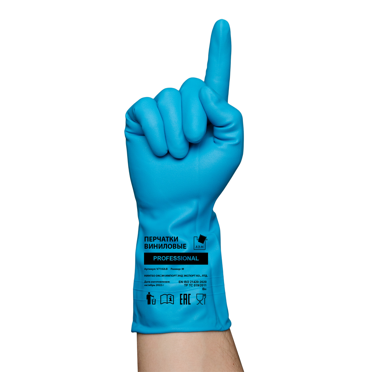 Перчатки хозяйственные виниловые, ТР ТС, M, голубой, 2 шт