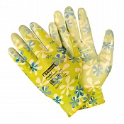 и влажными поверхностями и предметами: работа с удобрениями и рассадой, полив растений. Нитриловое покрытие обеспечивает отличное сцепление, а также высокий уровень чувствительности.