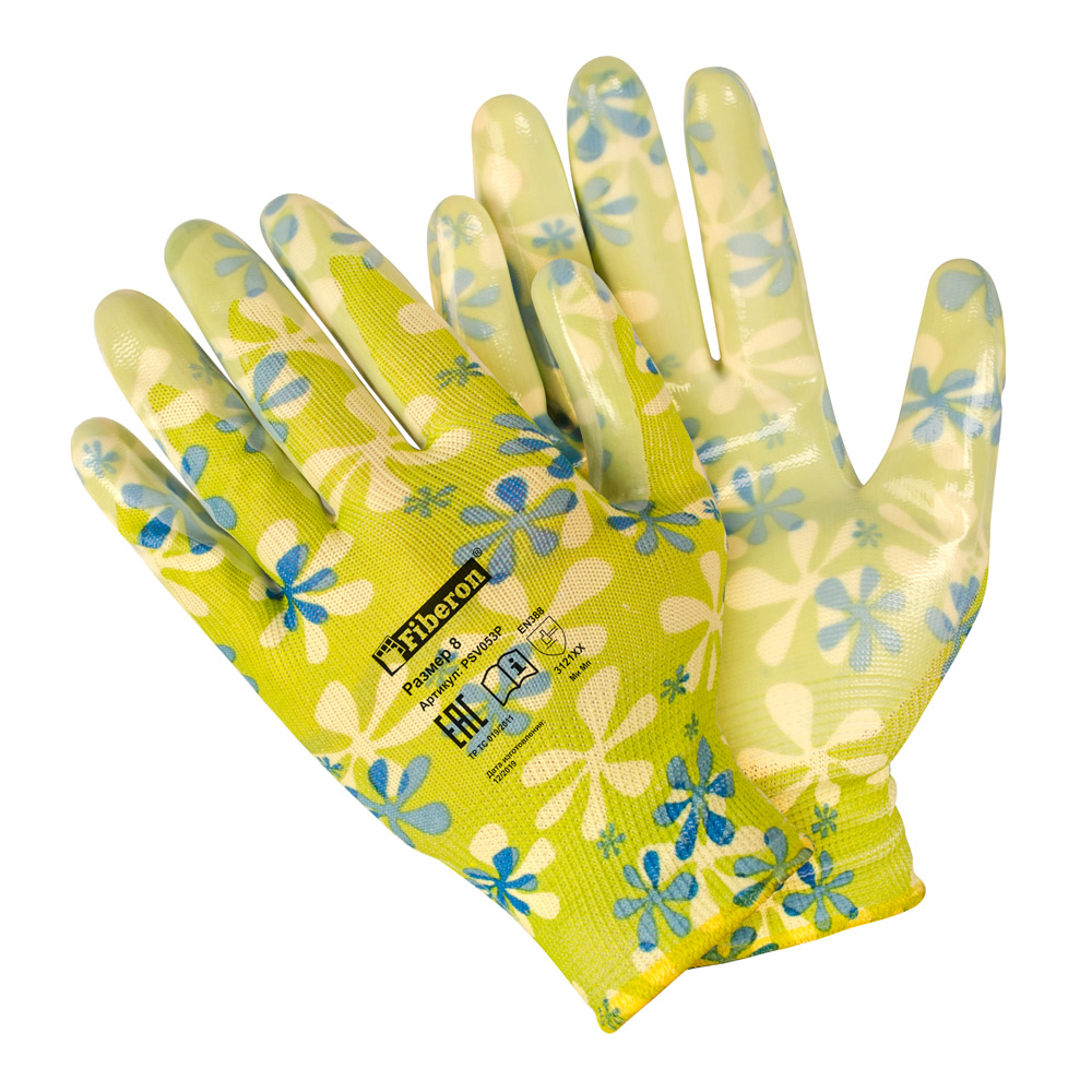 Перчатки «Садовые работы», полиэстер, нитриловое покрытие, разноцв, микс 5 цветов, в и/у, 8(М), Fiberon