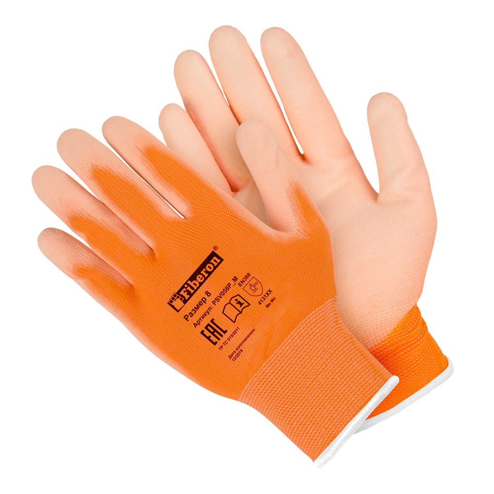Перчатки «Садовые работы», полиэстер, полиуретановое покрытие, однотон, микс цветов, в и/у, 8(M), Fiberon